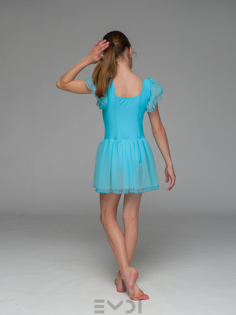 Воздушный детский комбидресс для юных танцовщиц. Вшита юбка и рукава из органзы.