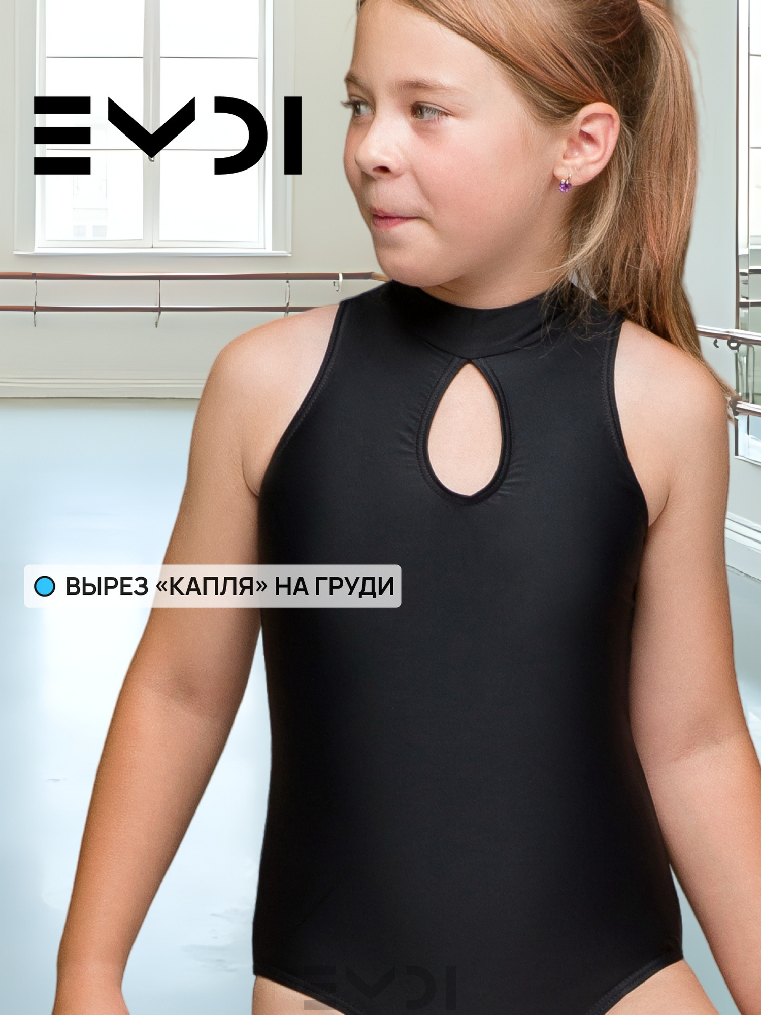 Гимнастический комбидресс с вырезом-каплей на груди. Воротничок-стойка кнопке.