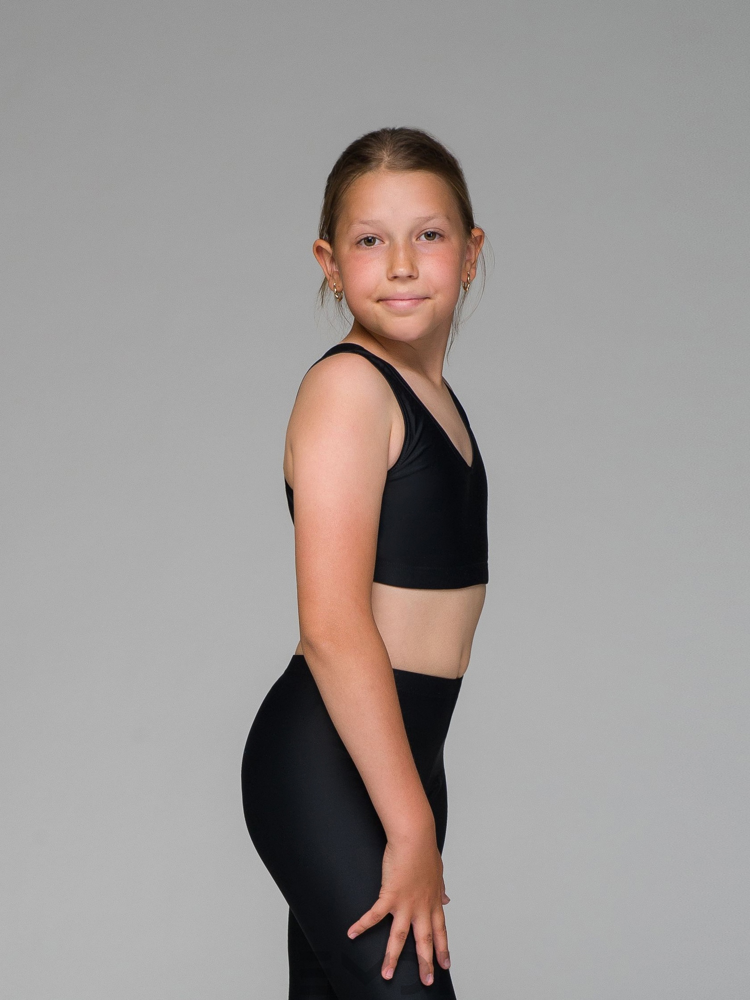 Классический топ для гимнастики без рукава. Спинка-борцовка. Резина под грудью.