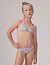Летний купальник-бикини для маленьких леди с актуальным во все времена принтом "горох" и яркими окантовками.