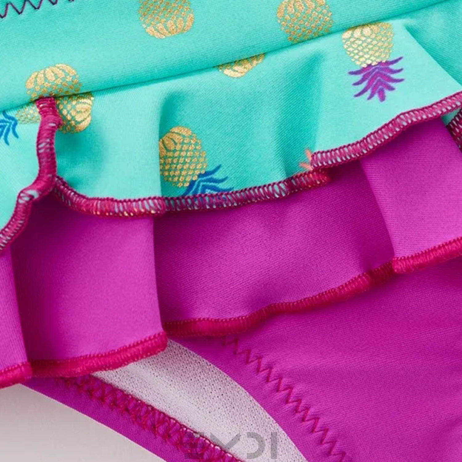 Восхитительные пляжные плавочки для девочки. Украшены объемными рюшами.