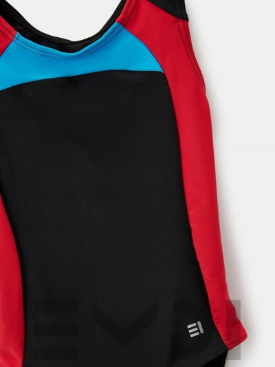 Спортивный купальник с яркими вставками. Дублированный перед. Спинка-борцовка. Материал устойчив к хлорированной и морской воде.