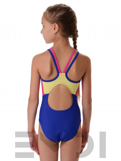 Спортивный купальник с яркими боковыми вставками. Материал устойчив к хлорированной воде.