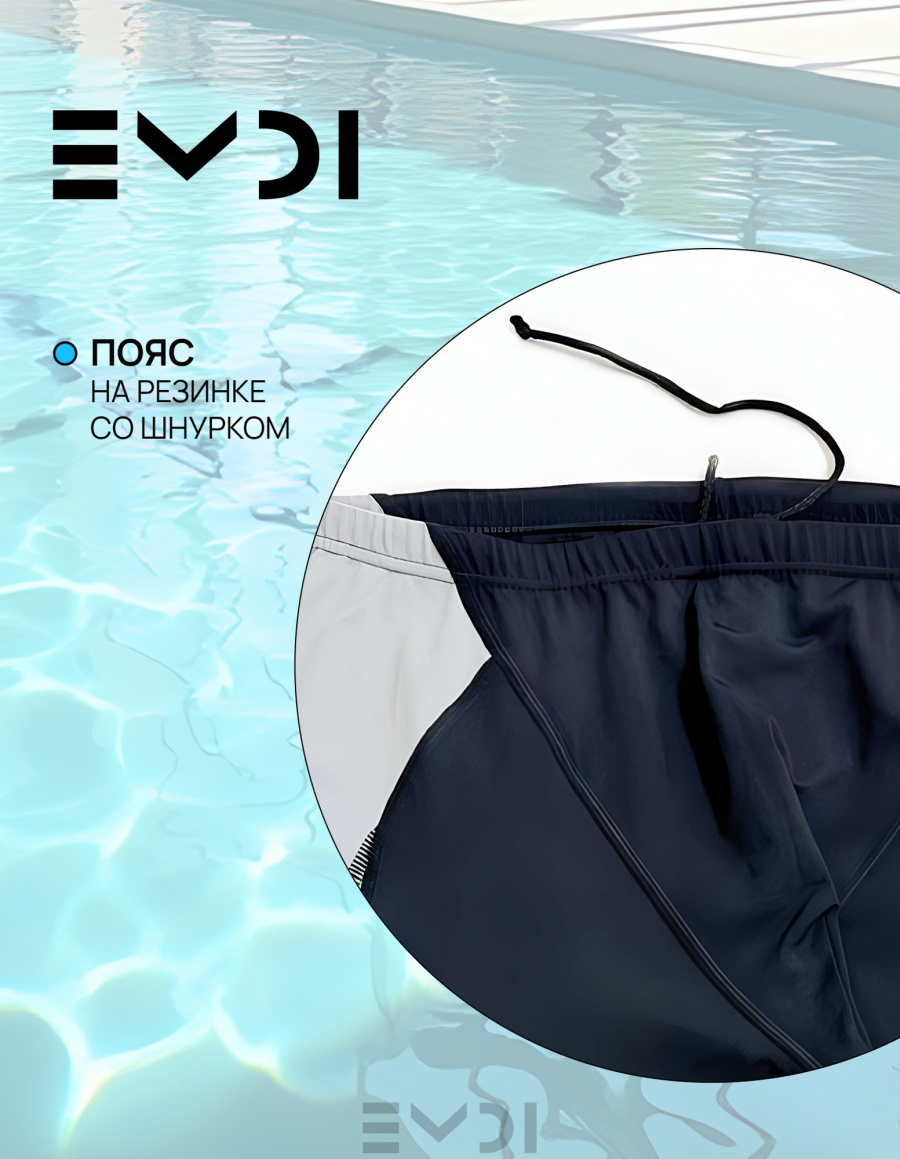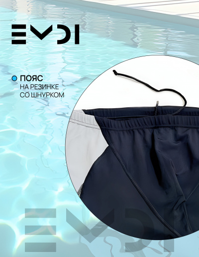 Удлиненные плавки-джаммеры из специального материала PBT для бассейна. Полотно с плотным прилеганием. Не растягивается, не изнашивается. Для спортивного плавания. Пояс на резине со шнуром. Плоские швы.