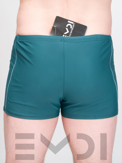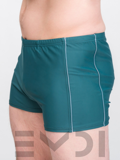 Спортивные плавки-шорты модного кроя. Украшены боковыми кантами. Пояс на резине со шнуром. Ластовица-карман. Материал устойчив к хлорированной и морской воде.