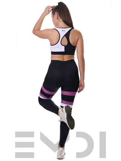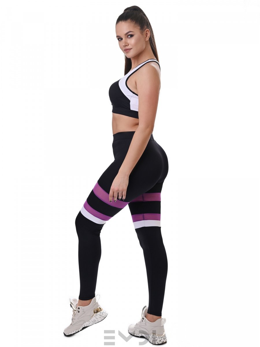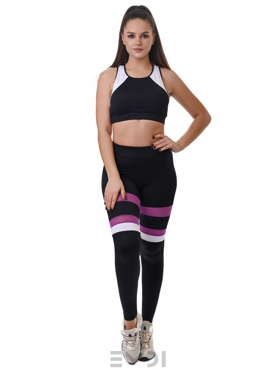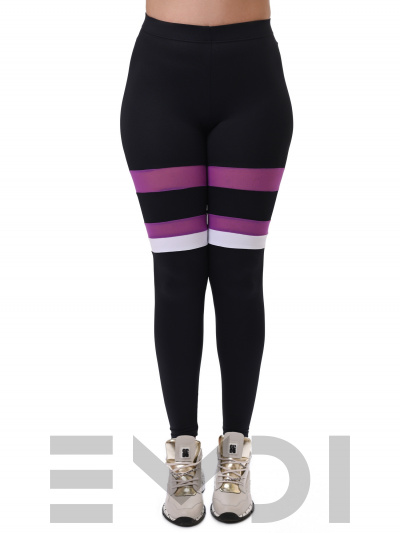 Модные и удобные лосины из итальянского мерила. Украшены необычными поперечными вставками. Широкий пояс с резиной обеспечивает дополнительный комфорт.