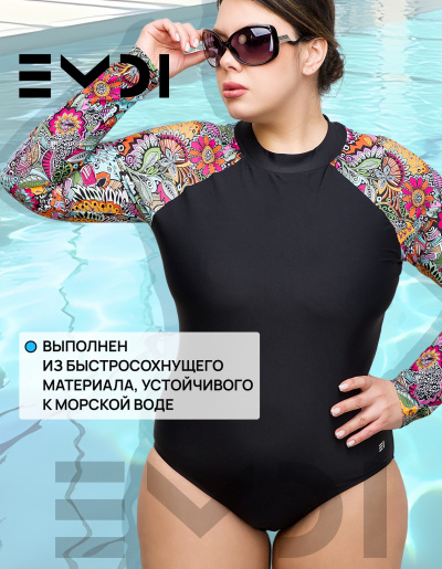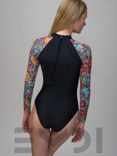 Комбидресс (купальник с длинным рукавом) для водных видов спорта. Выполнен из быстросохнущего материала, устойчивого к морской воде. Молния на спине со шнуром для удобного застегивания.состав: полиамид 80%- эластан 20%