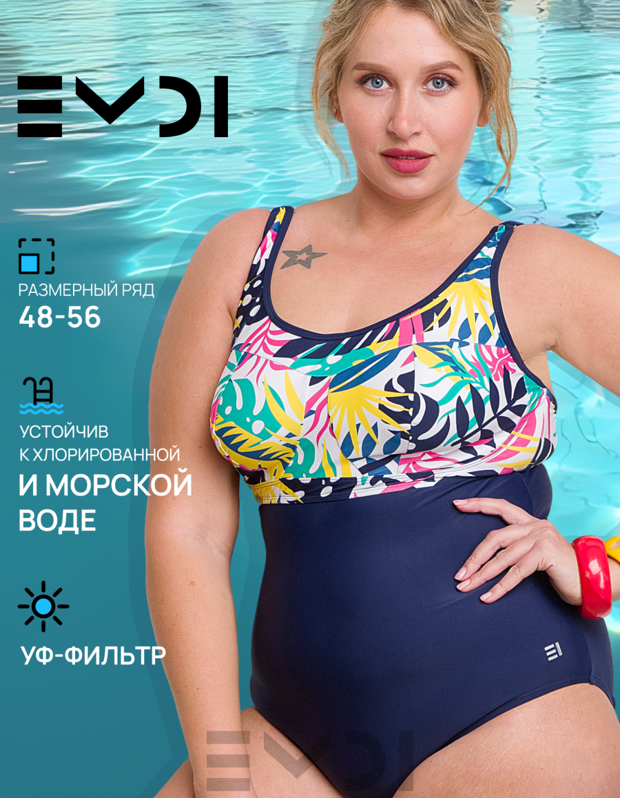 Элегантный купальник с ярким принтованным дублированным лифом. Застёжка на спине,регулируемые бретели. Поддержка с помощью боковых костей. Состав: полиамид 80% - эластан 20%