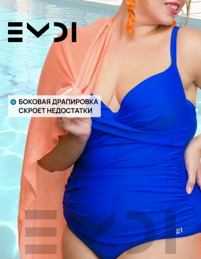 Романтичный купальник оригинального дизайна и кроя.Особенности строения лифа и плотные чашки отлично формируют линию груди. Боковая драпировка скроет недостатки. Застёжка на спине. Состав:полиамид 80% - эластан 20%