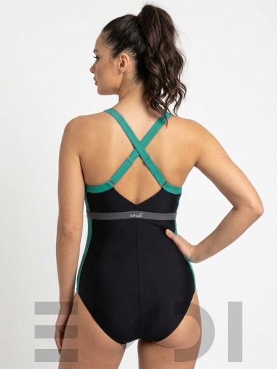 Стильный купальник оригинального кроя.Контрастные боковые ставки придают стройности фигуре.Мягкие поролоновые чашки,регурируемые по длине бретели.Материал устойчив к хлорированной и морской воде.