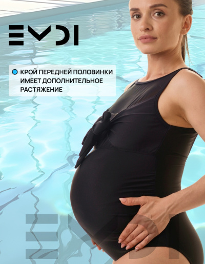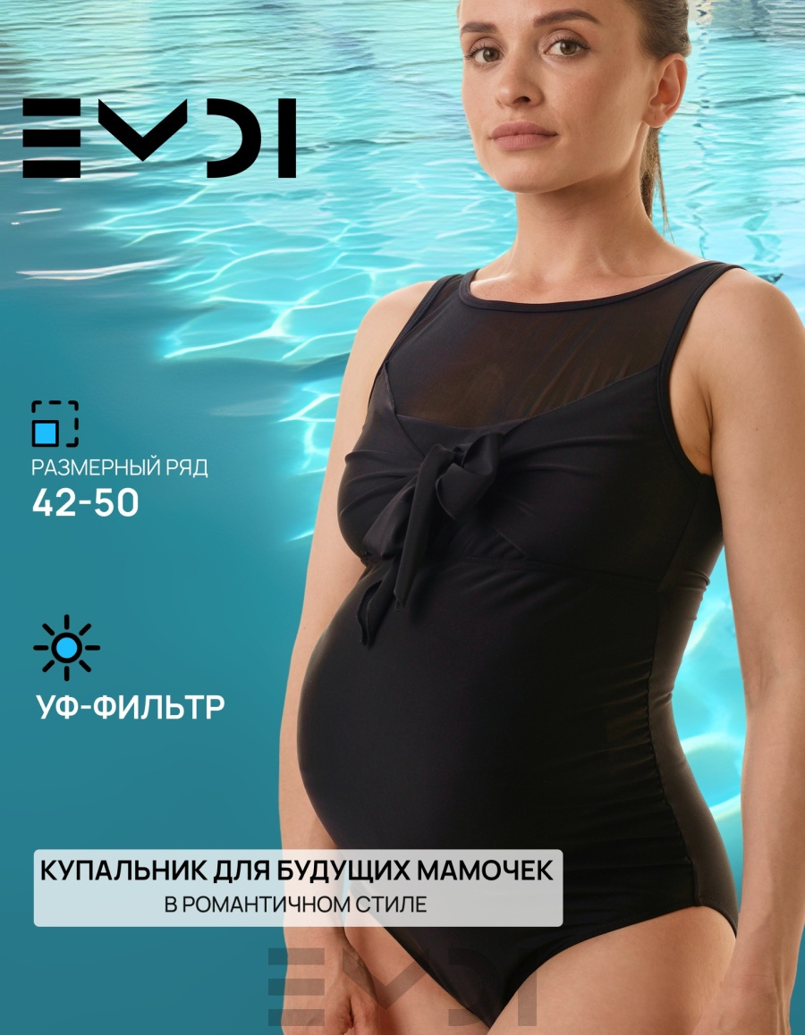 Купальник для будущих мамочек в романтическом стиле. Регулируемые бретели. Крой передней половинки имеет дополнительное растяжение.