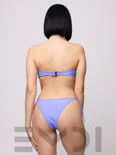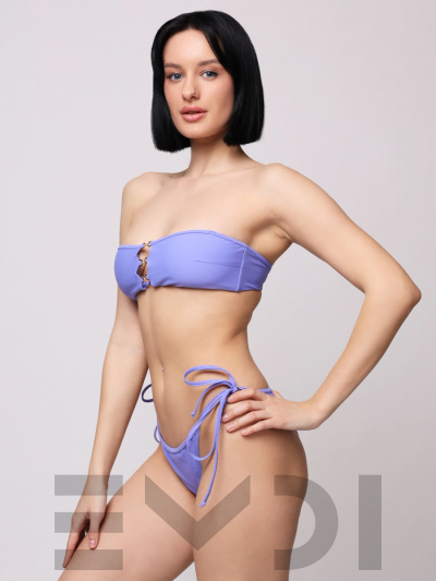Роскошный купальник-бандо с эффектной фурнитурой по центру лифа. В комплекте идут регулируемые съемные бретели. Трусики- бикини с боковыми завязками.