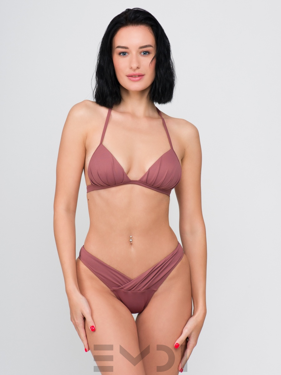 Романтичный летний купальник. Поролоновая чашка и драпировка на лифе создадут неповторимую линию декольте. Оригинальный крой плавок. Тип фигуры Х, А и Н