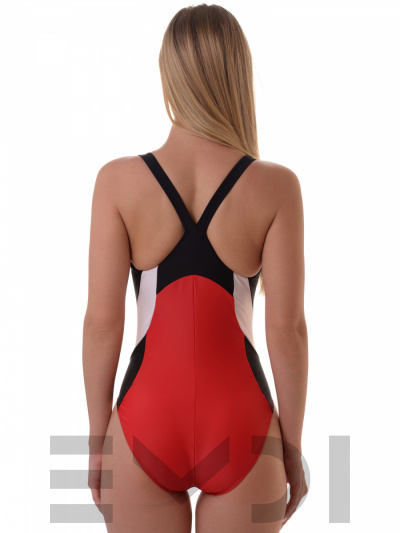 Стильный спортивный купальник с яркими вставками придает Вашей фигуре еще более стройный вид. Оригинальный крой спины. Материал устойчив к хлорированной воде.