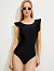 Актуальный летний купальник в романтическом стиле. Тренд сезона - волан-реглан. Дублированный. Внутренняя чашка на лифе съемная. Материал устойчив к морской воде. Тип фигуры любой.