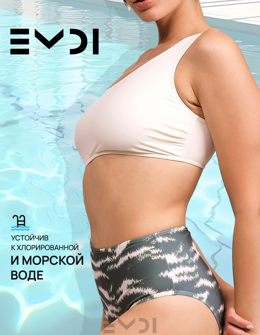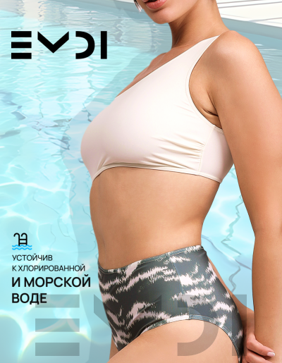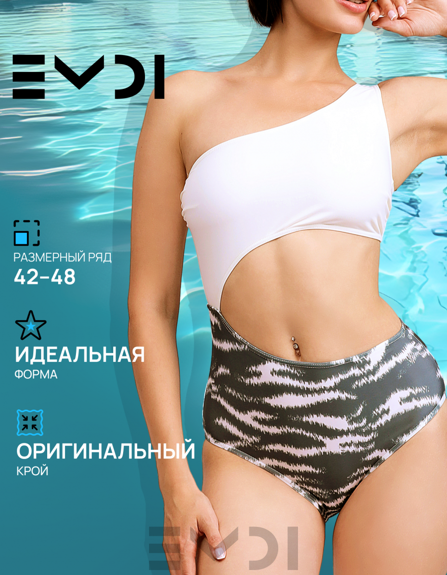 Оригинальная модель купальника и модный хищный принт сделают Вас королевой пляжа и пляжных вечеринок. Дублированный лиф, чашки-вкладыши. Тип фигуры Х и А