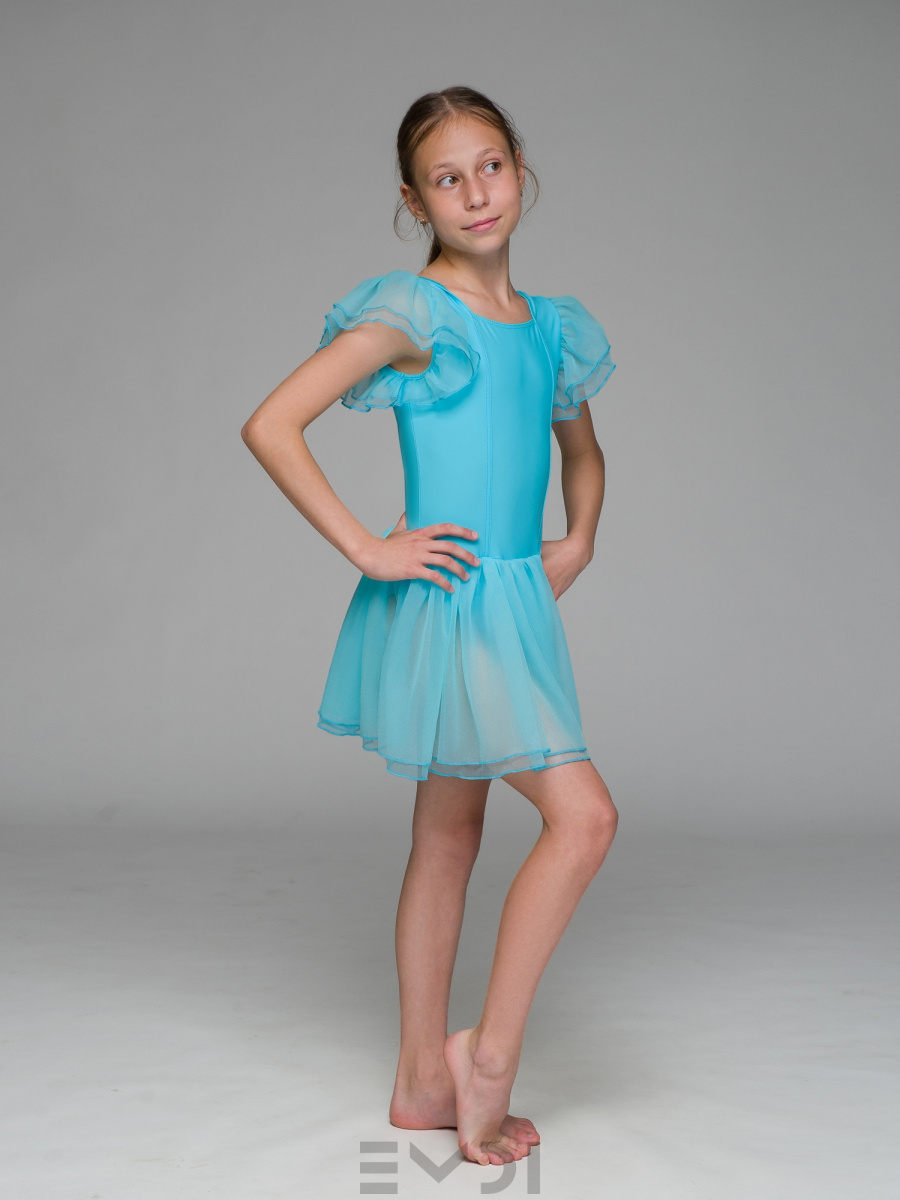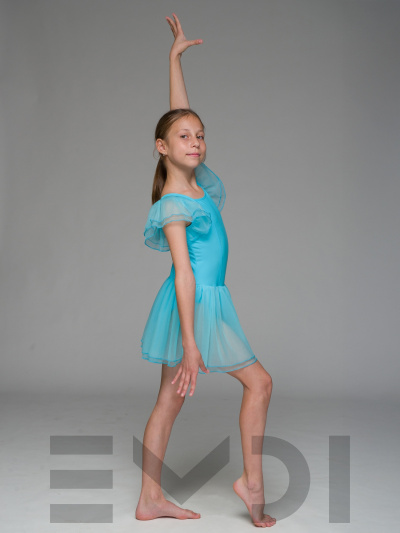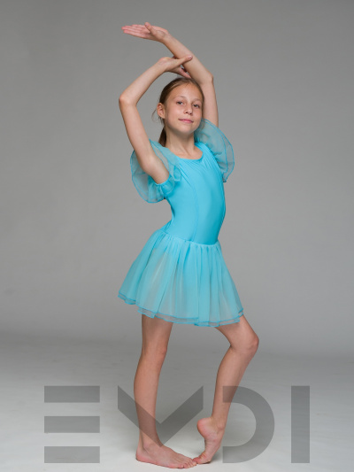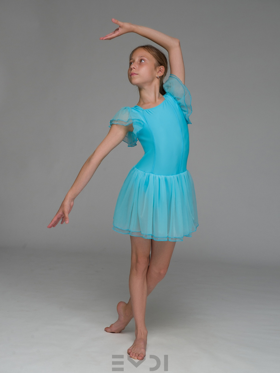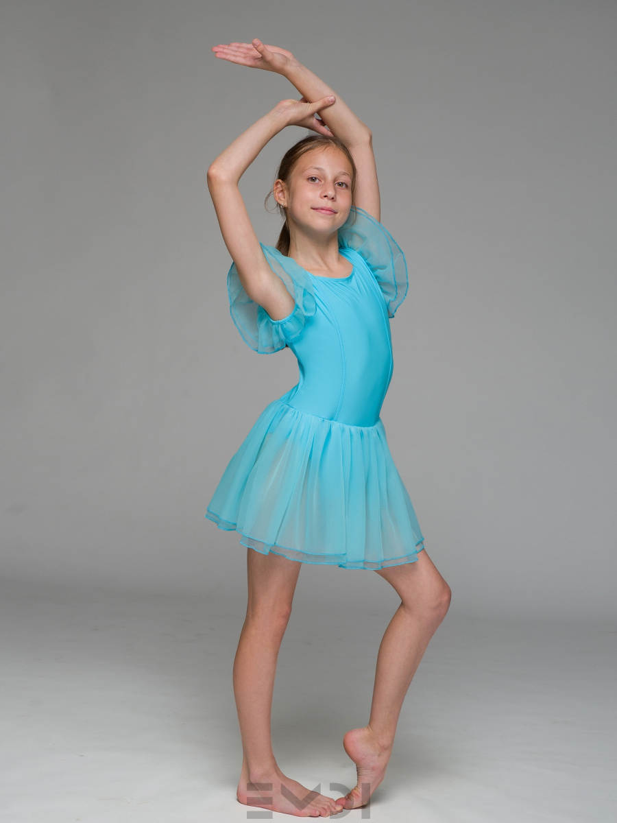 Воздушный детский комбидресс для юных танцовщиц. Вшита юбка и рукава из органзы.