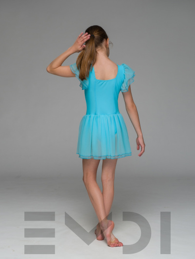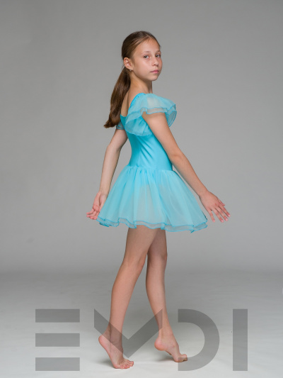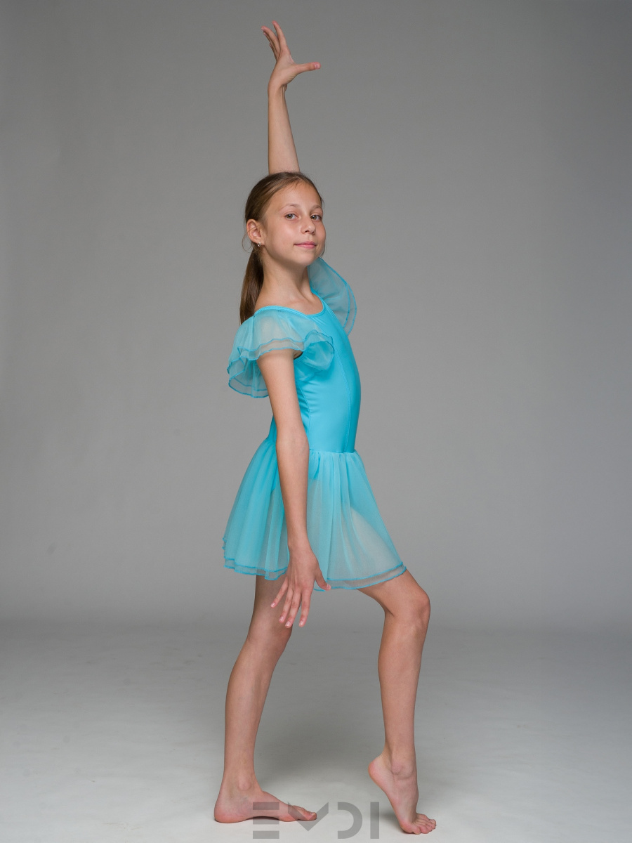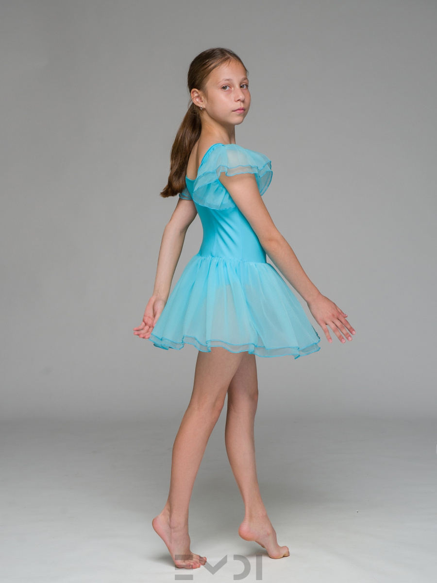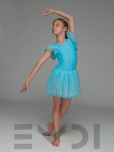 Воздушный детский комбидресс для юных танцовщиц. Вшита юбка и рукава из органзы.