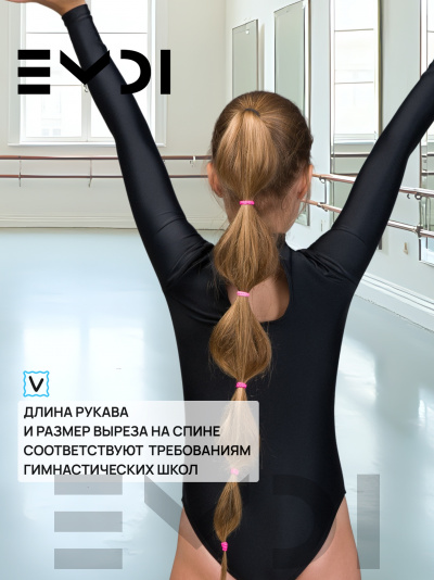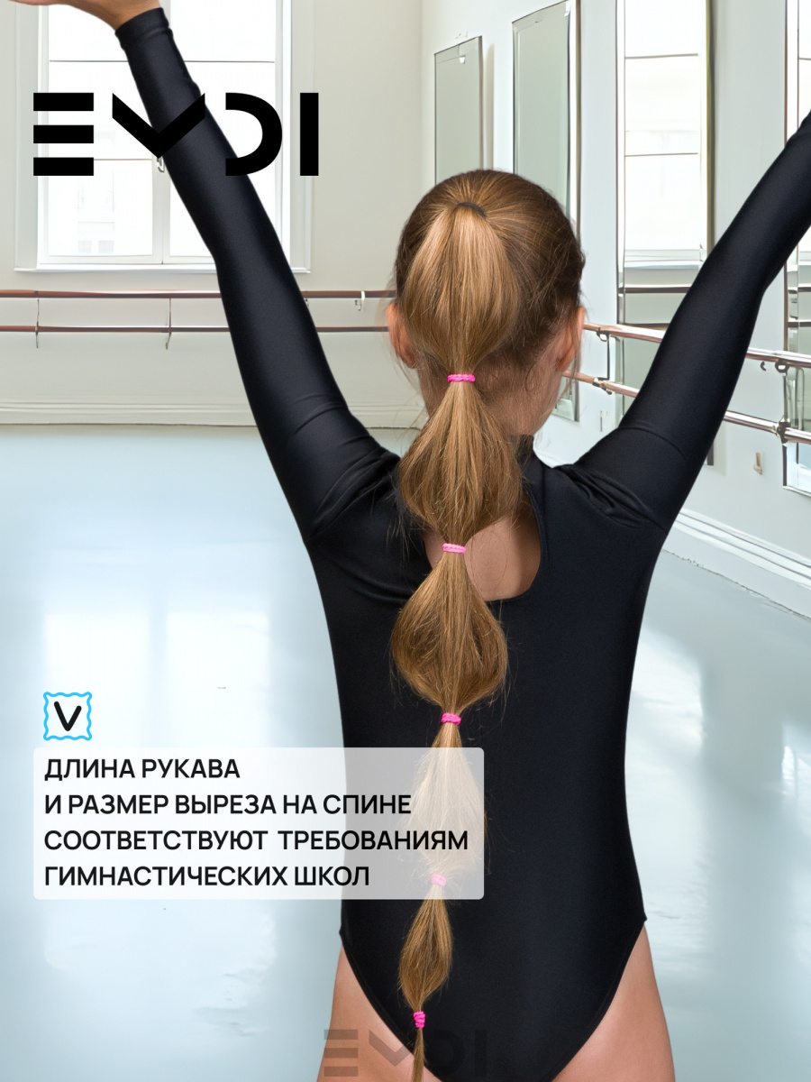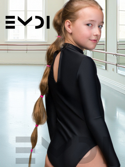Классический гимнастический комбидресс с закрытым воротничком-стойка. Длина рукава соответствуют требованиям гимнастических школ.